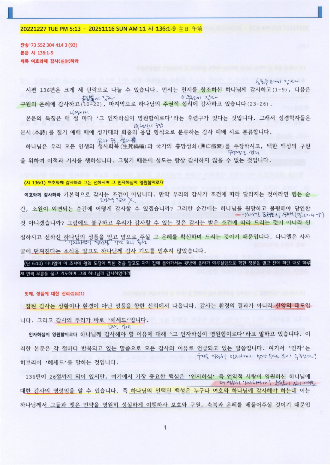 (시 136:1) 여호와께 감사하라 그는 선하시며 그 인자하심이 영원함이로다