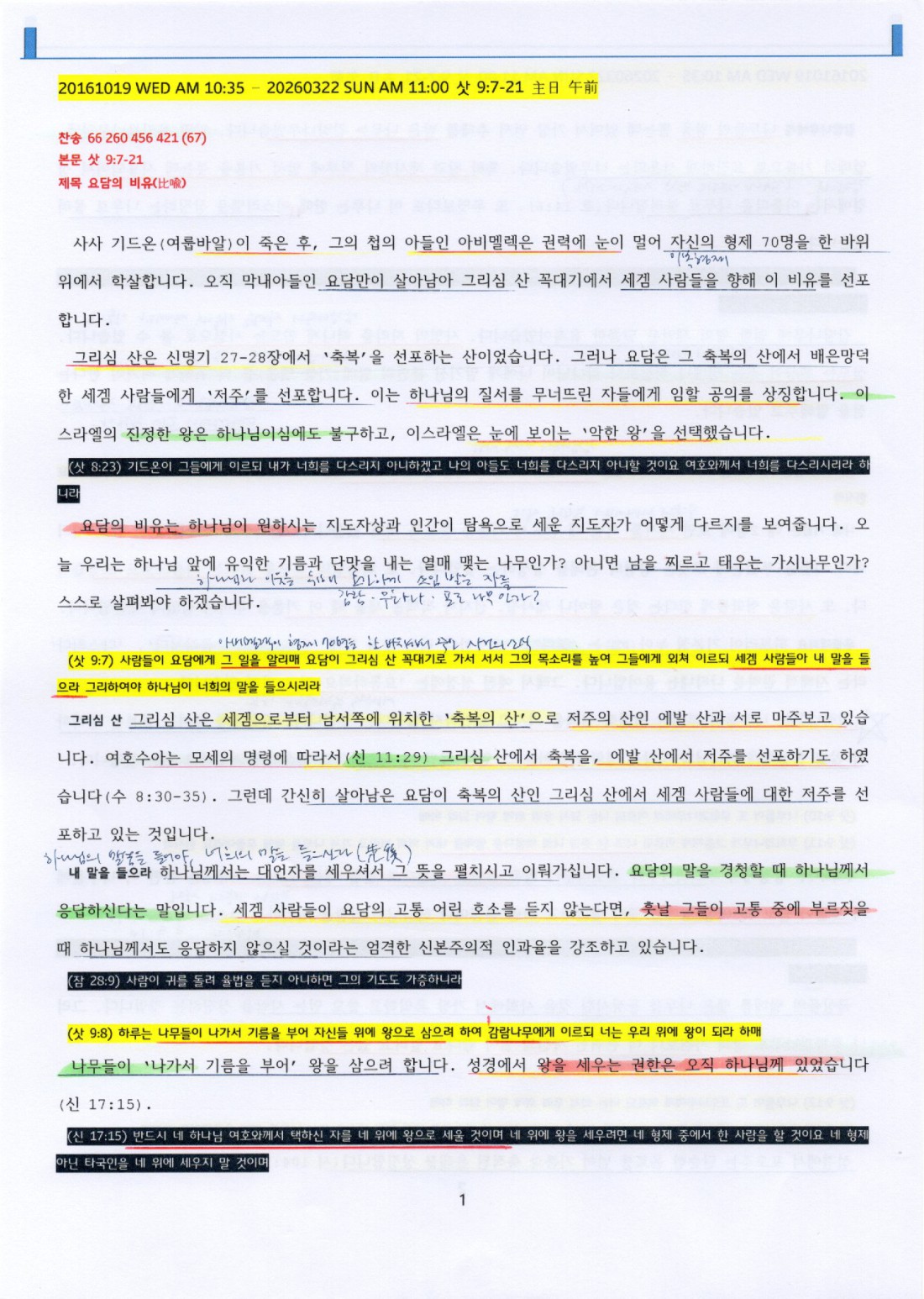 본문 : 삿 9:7-21