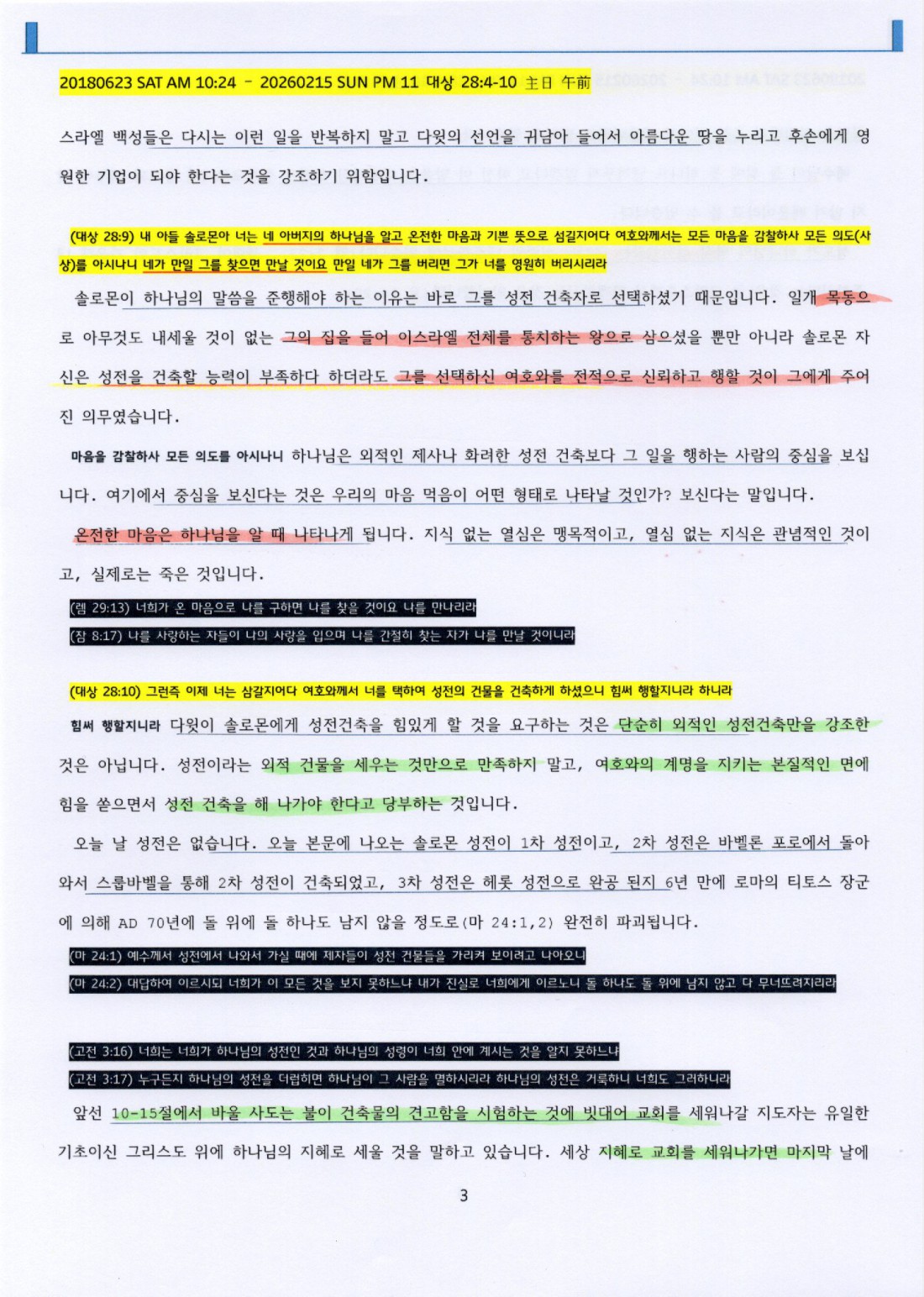 (대상 28:10) 그런즉 이제 너는 삼갈지어다 여호와께서 너를 택하여 성전의 건물을 건축하게
