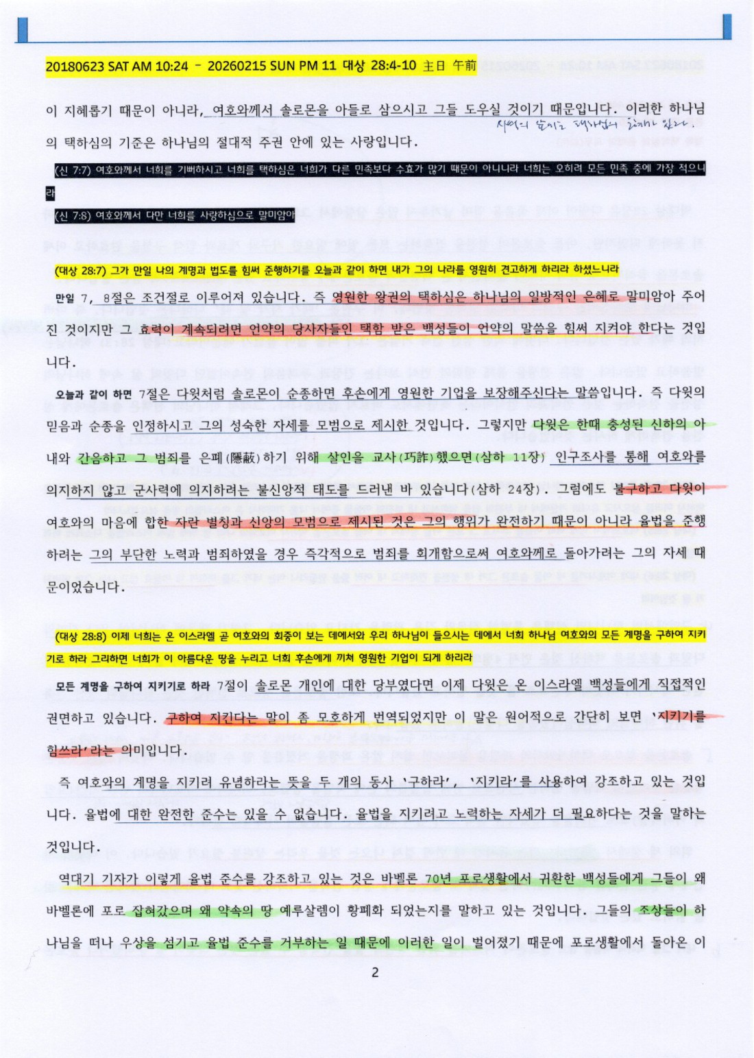 (대상 28:7) 그가 만일 나의 계명과 법도를 힘써 준행하기를 오늘과 같이 하면 내가 그의 나라를