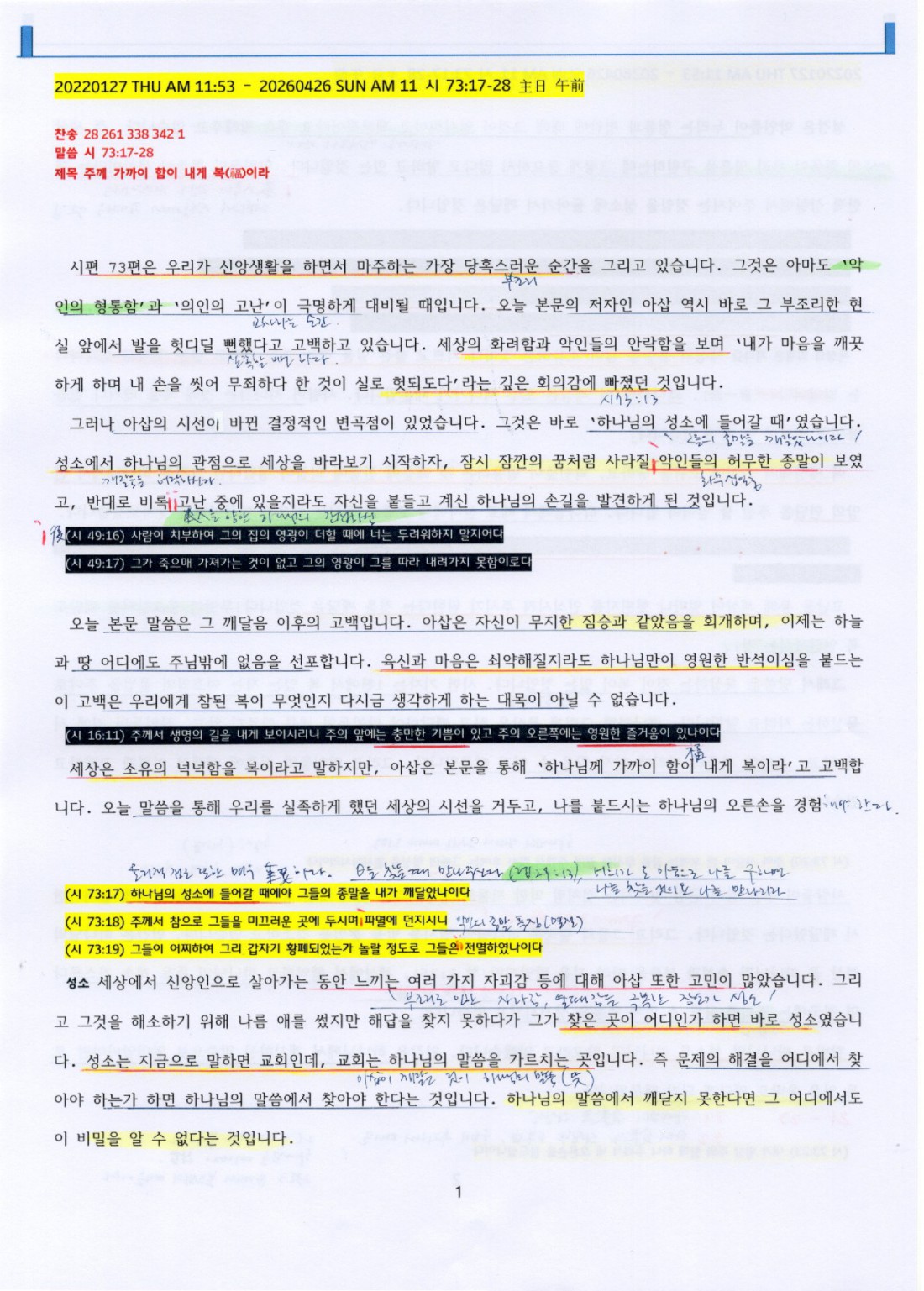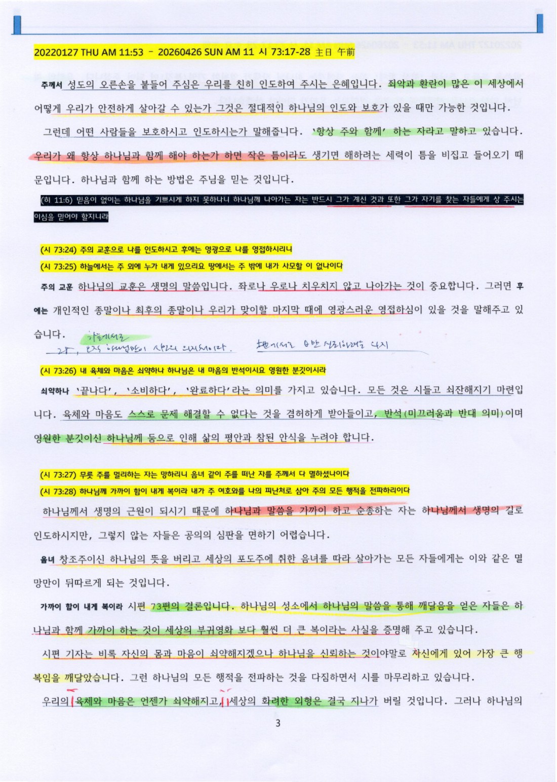 (시 73:23) 내가 항상 주와 함께 하니 주께서 내 오른손을 붙드셨나이다