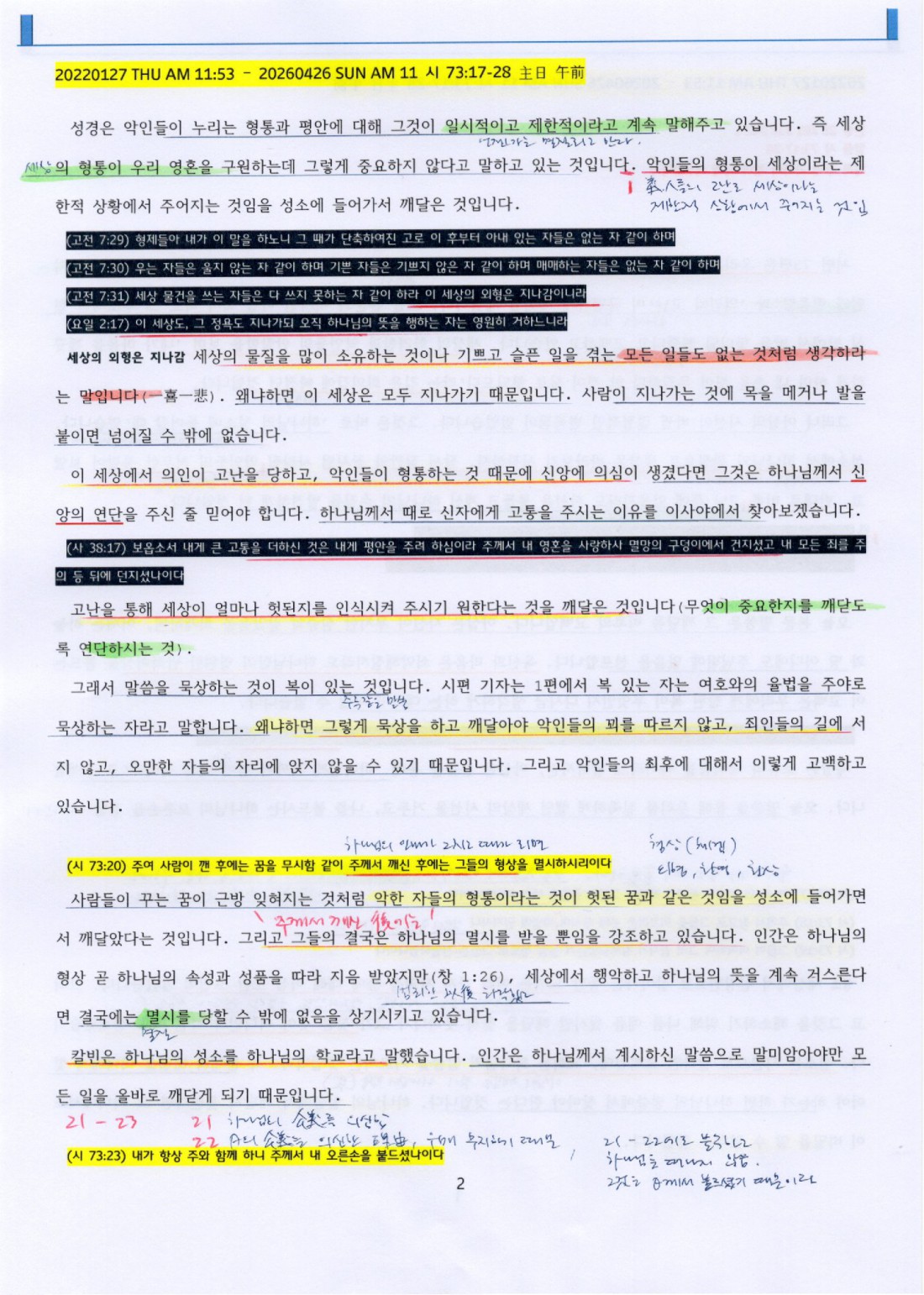 (시 73:21) 내 마음이 산란하며 내 양심이 찔렸나이다