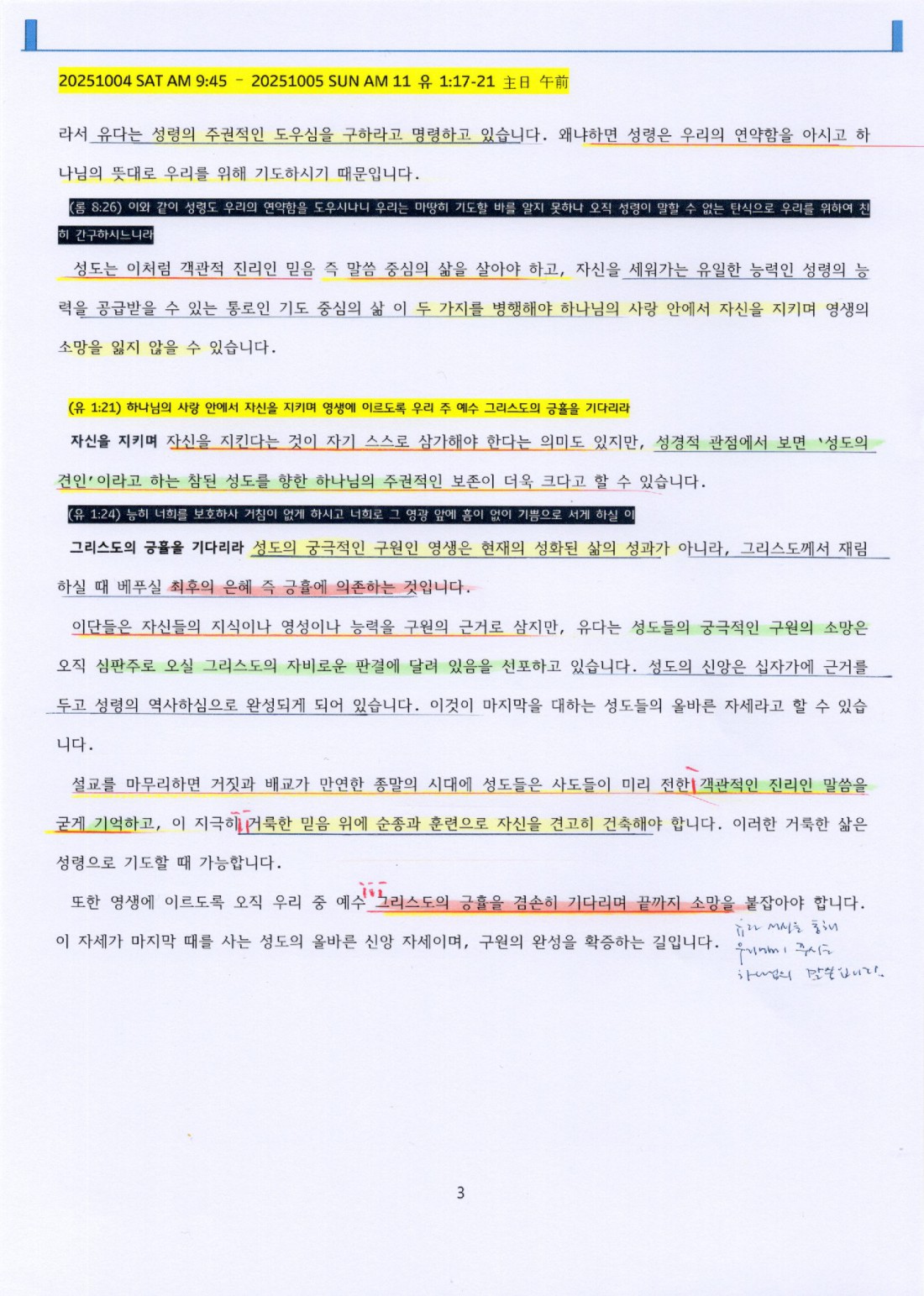 (유 1:21) 하나님의 사랑 안에서 자신을 지키며 영생에 이르도록 우리 주 예수 그리스도의 긍휼을