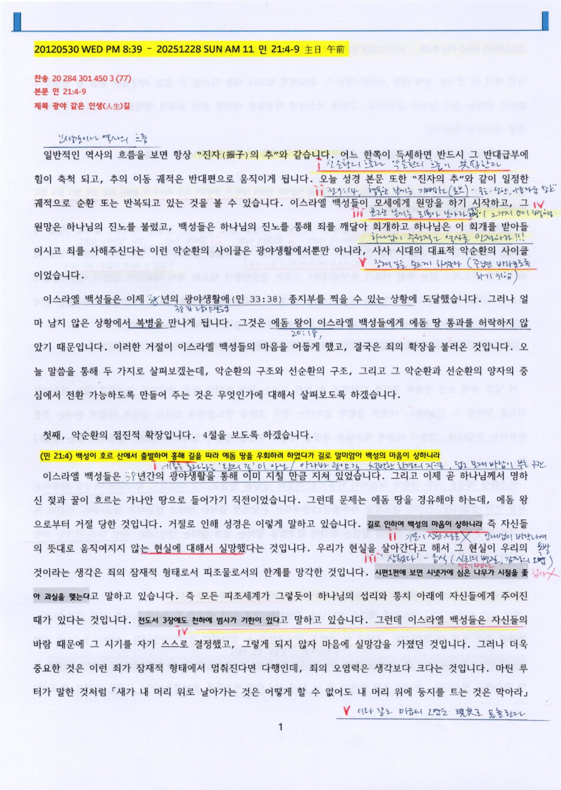 제목 : 광야 같은 인생 길