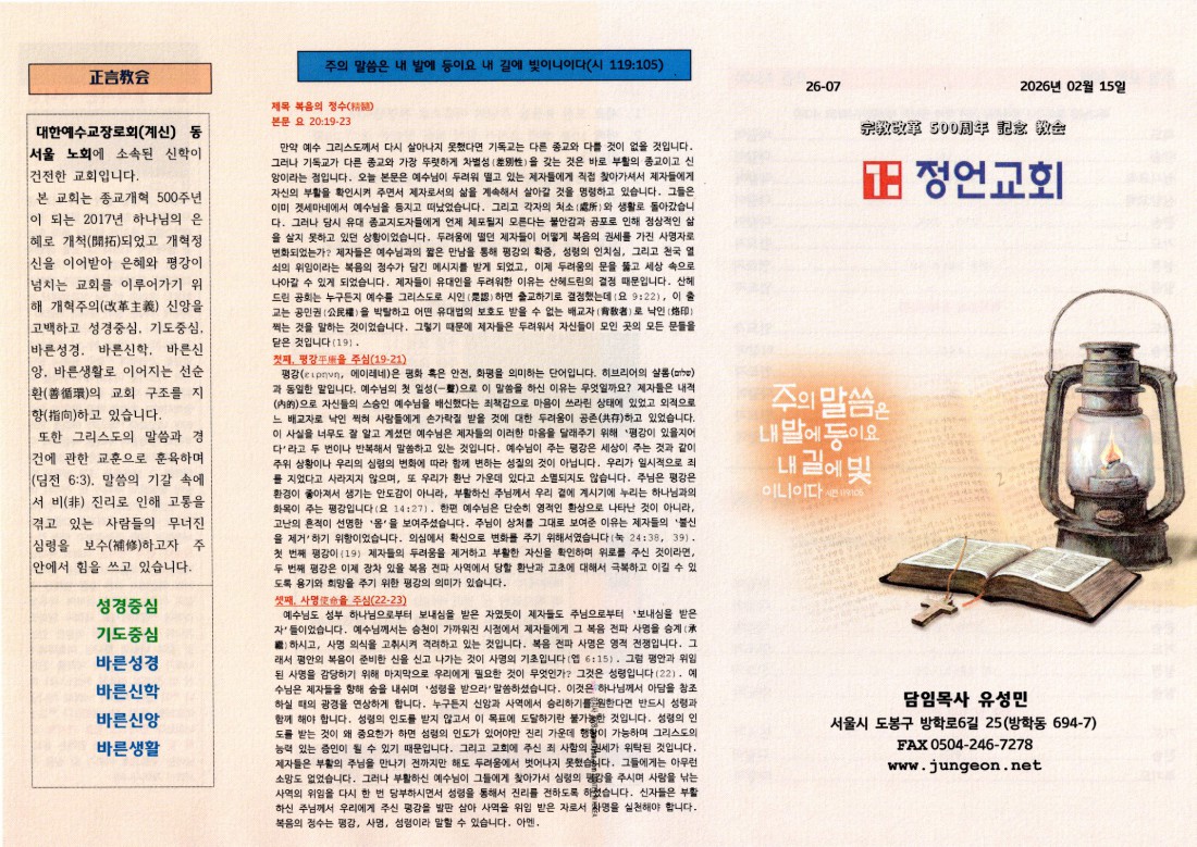 온라인 헌금 : 농협 351-0985-7333-33 정언교회