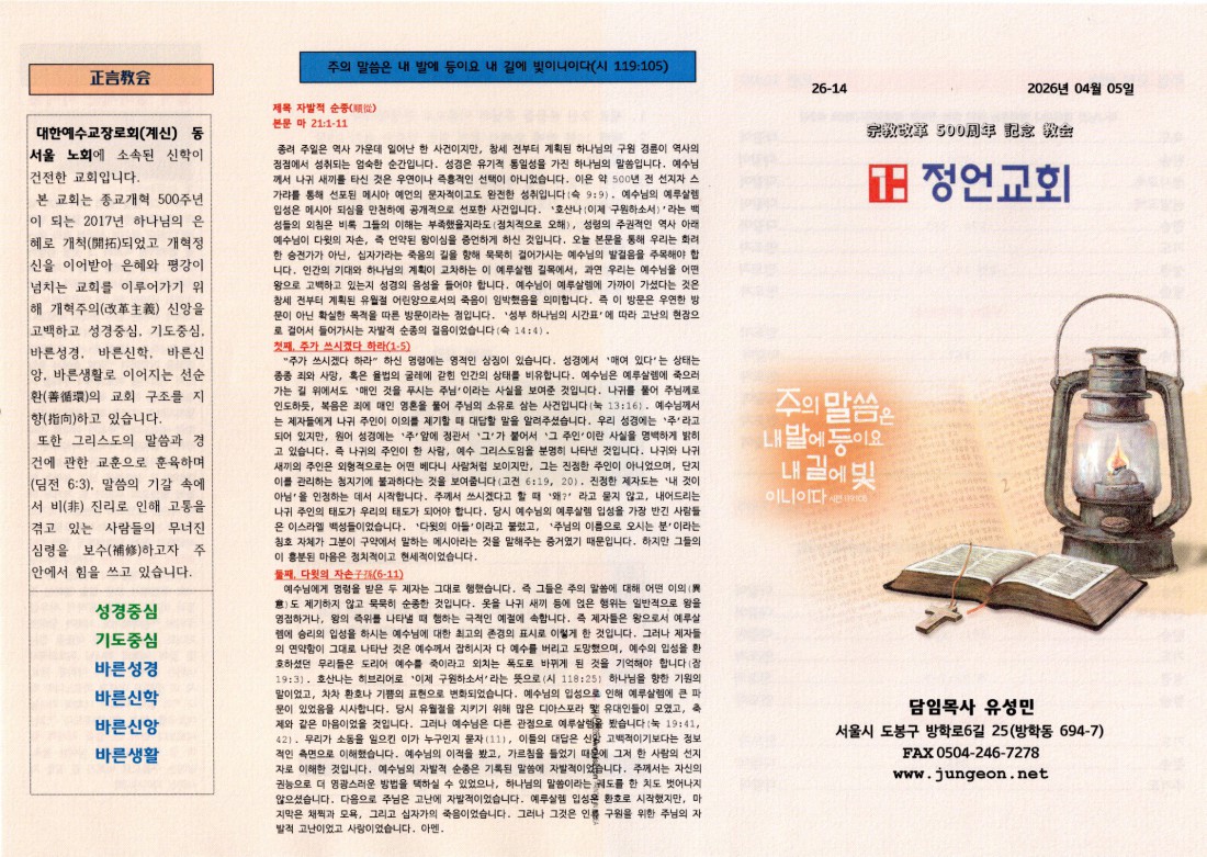 온라인 헌금 : 농협 351-0985-7333-33 정언교회