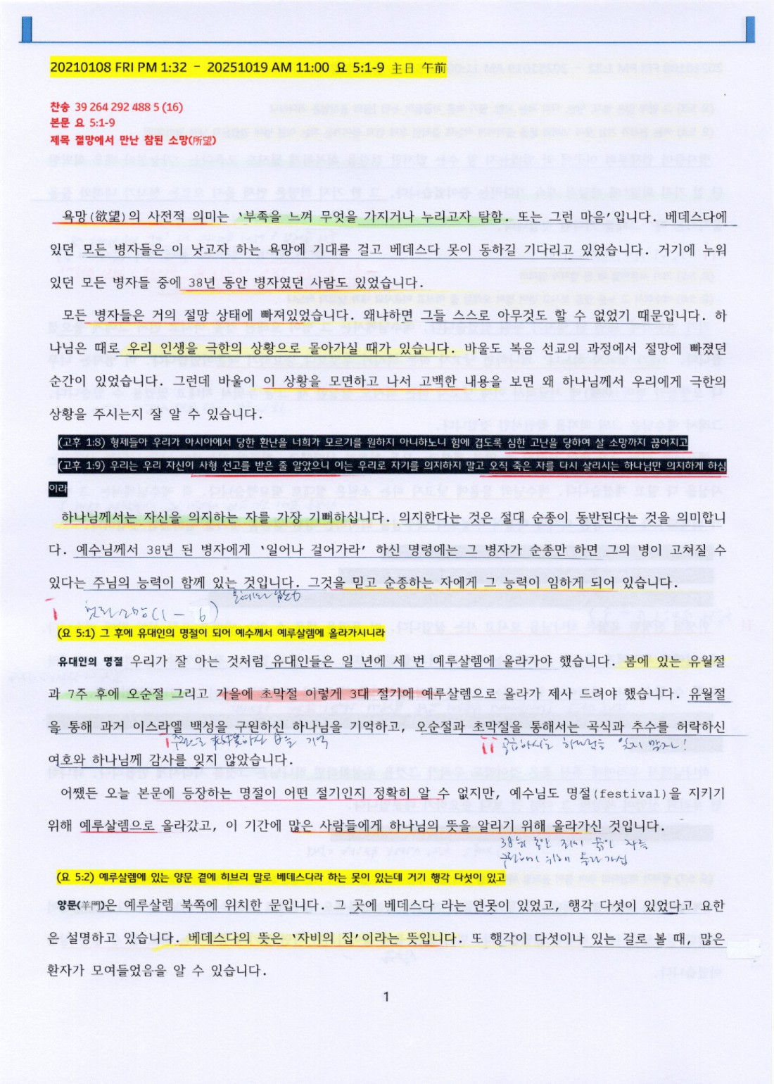 본문 : 요 5:1-9