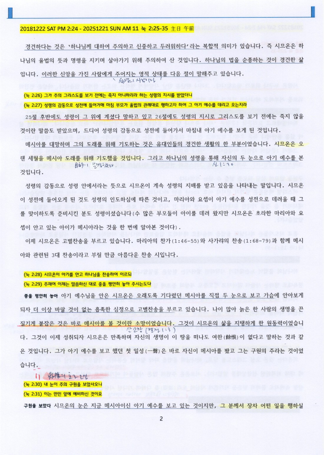 (눅 2:29) 주재여 이제는 말씀하신 대로 종을 평안히 놓아 주시는도다