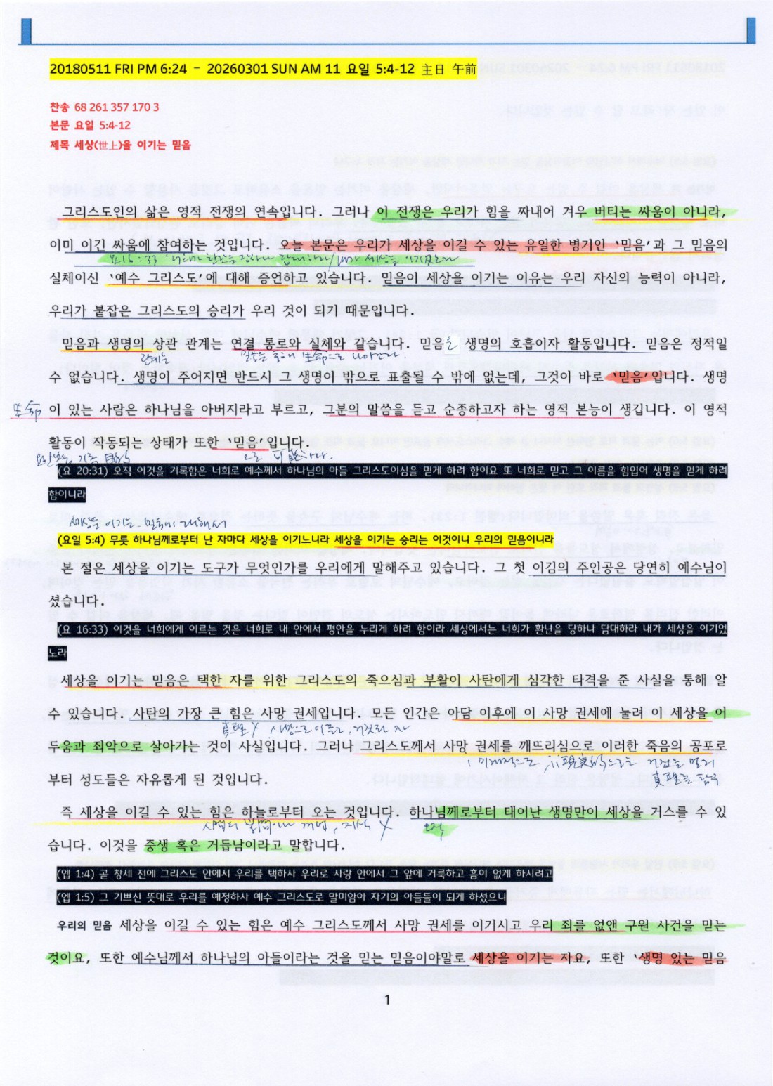 제목 : 세상을 이기는 믿음