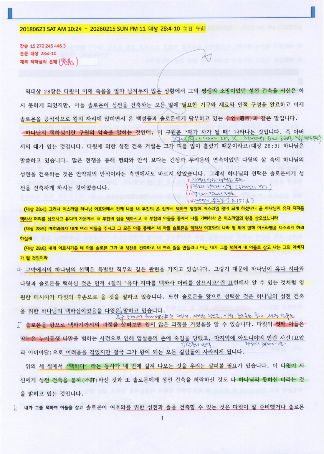 제목 : 택하심의 은혜