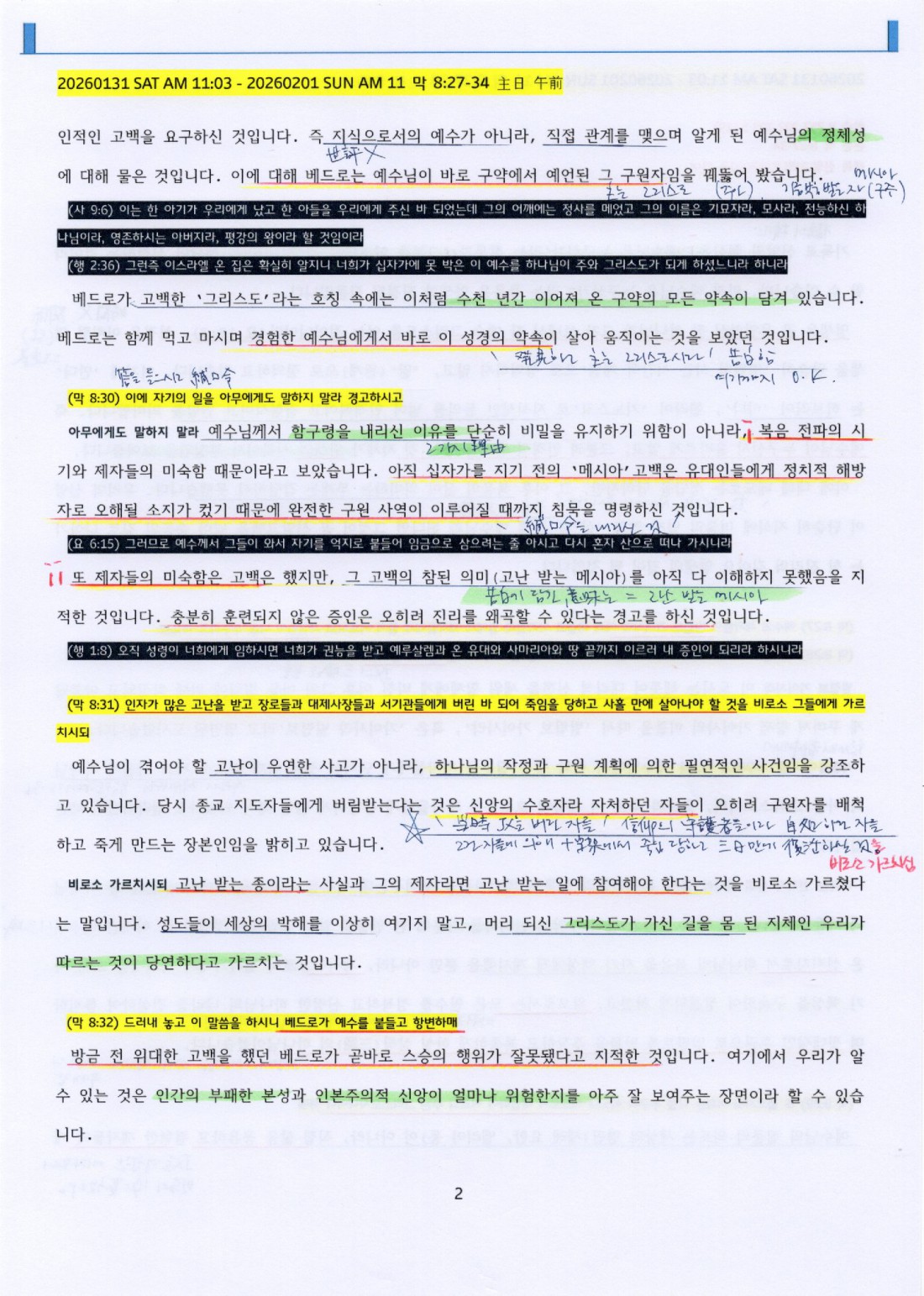 (막 8:31) 인자가 많은 고난을 받고 장로들과 대제사장들과 서기관들에게 버린 바 되어 죽임을 당하