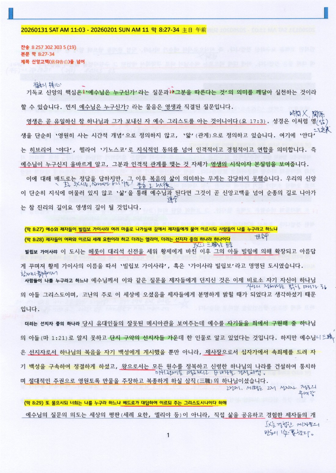 (막 8:30) 이에 자기의 일을 아무에게도 말하지 말라 경고하시고