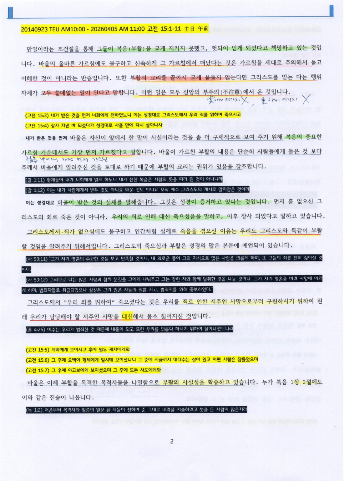 (고전 15:3) 내가 받은 것을 먼저 너희에게 전하였노니 이는 성경대로 그리스도께서 우리 죄를