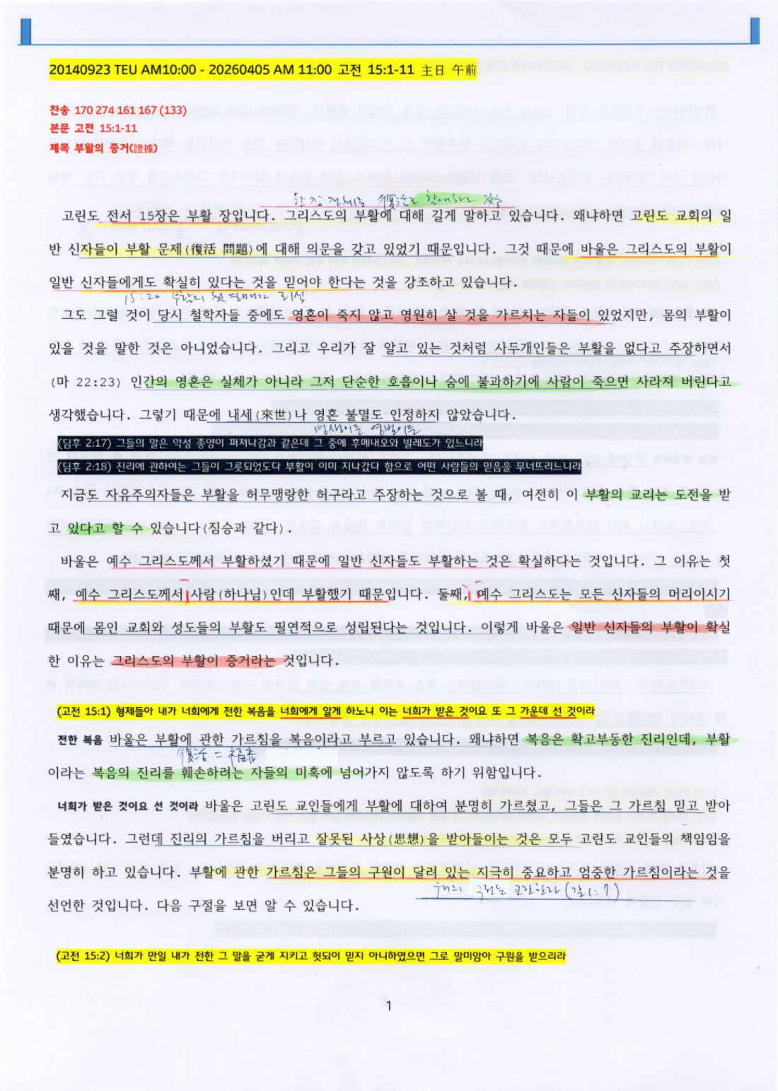 (고전 15:1) 형제들아 내가 너희에게 전한 복음을 너희에게 알게 하노니 이는 너희가 받은 것이요