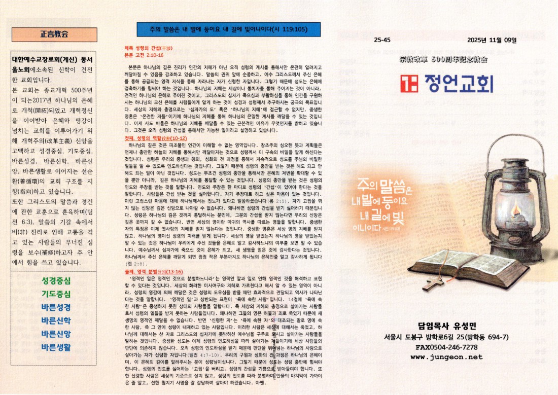 온라인 헌금 : 농협 351-0985-7333-33 정언교회