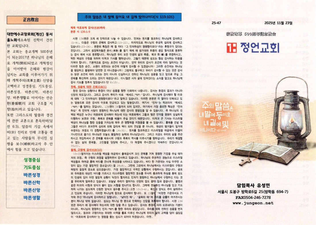 온라인 헌금 : 농협 351-0985-7333-33 정언교회
